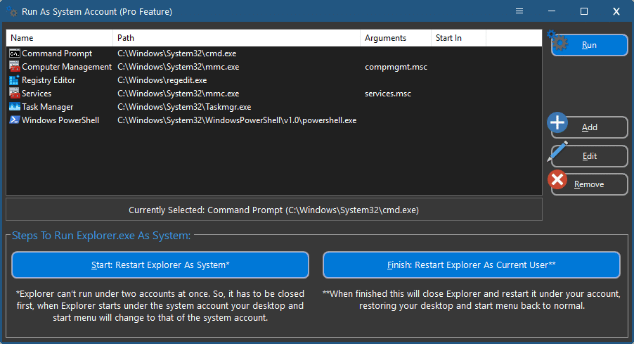 This allows you to run any program under the system account, including computer management, explorer, regedit and more. Giving you more privileges and access to the system without dealing with permissions. This also allows you to see registry keys hidden to all users and only visible to the system account.